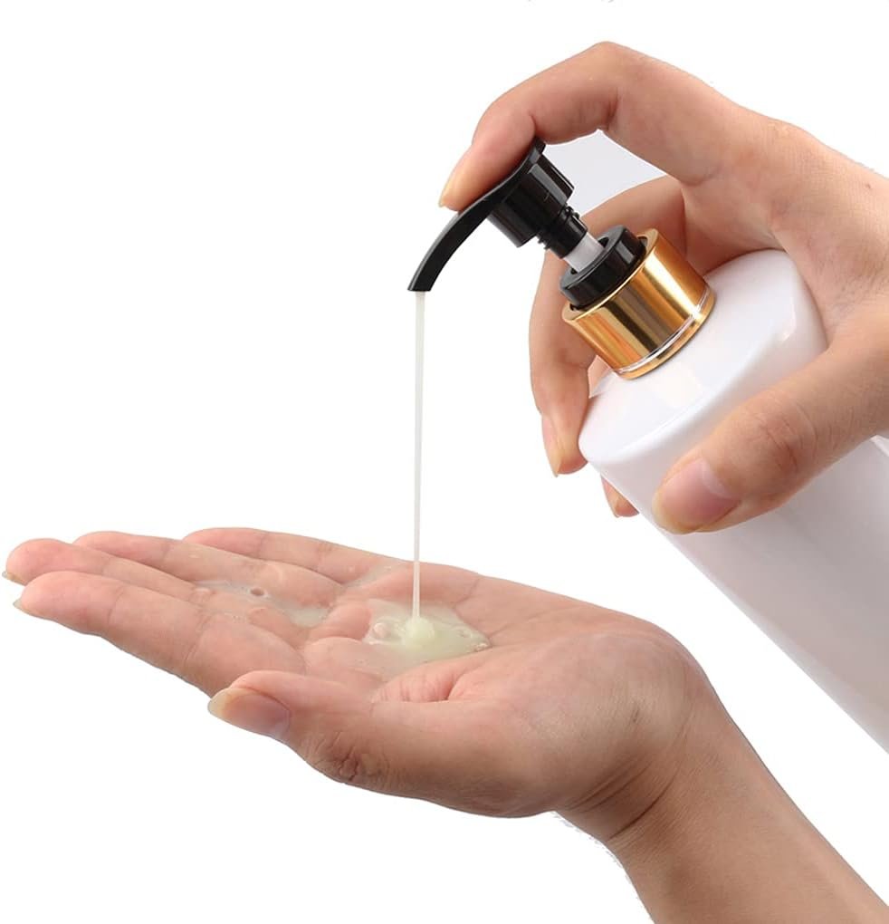 Ces flacons avec pompe distributrice sont fabriqués en plastique PET avec pompe en PP et bague décorative aluminium, offrant une présentation professionnelle et élégante pour vos produits cosmétiques.