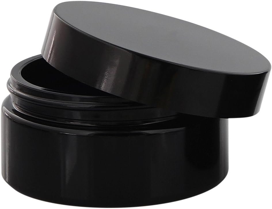 Ces pots cosmétiques noirs sont fabriqués en plastique PET épais avec couvercle en PP, offrant une finition élégante et professionnelle. Leur design cylindrique avec finition brillante valorise les produits haut de gamme.